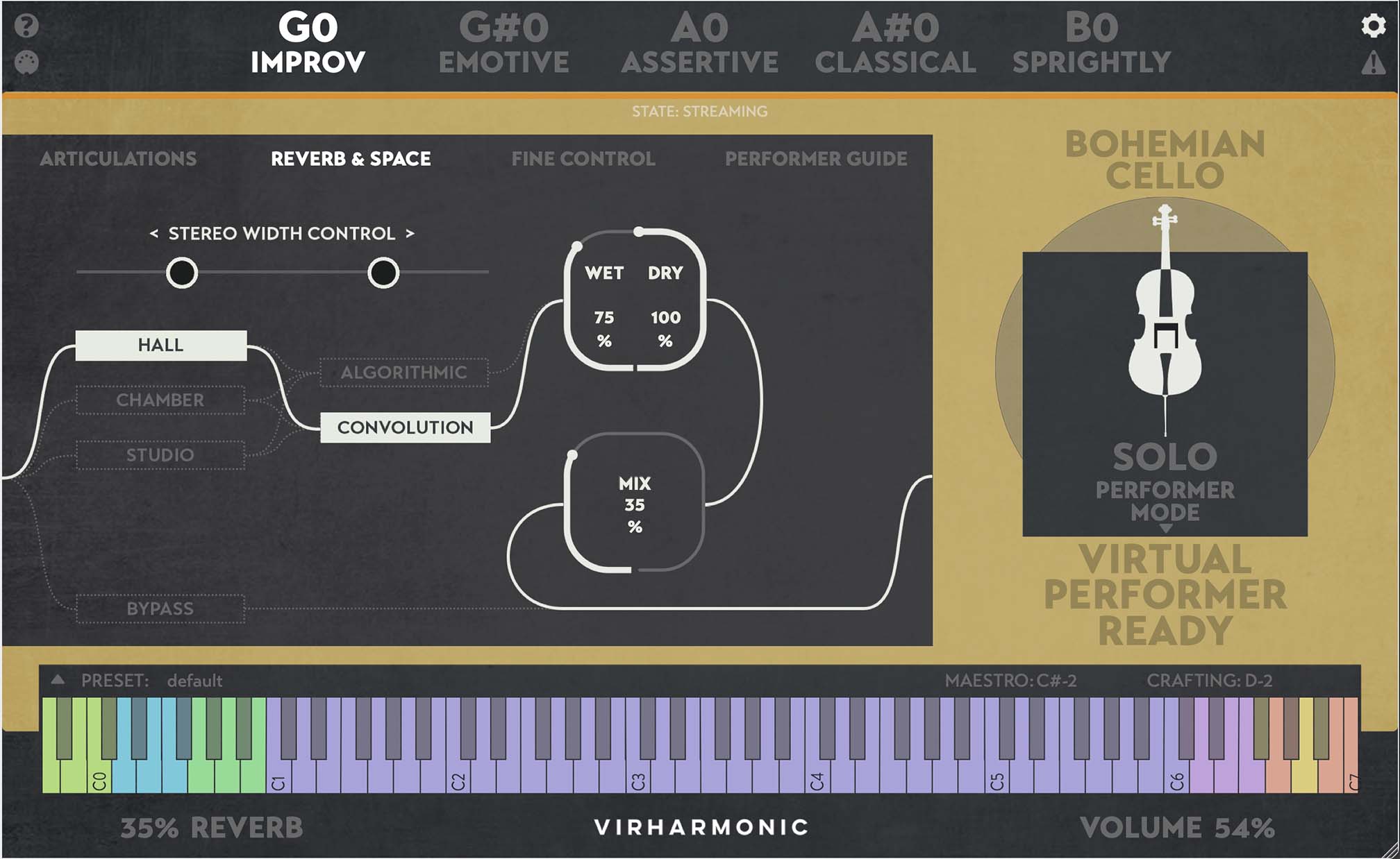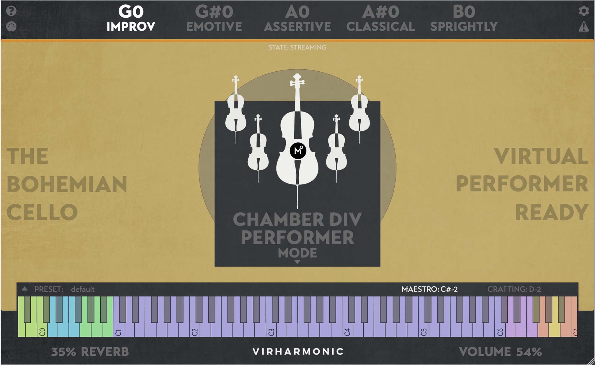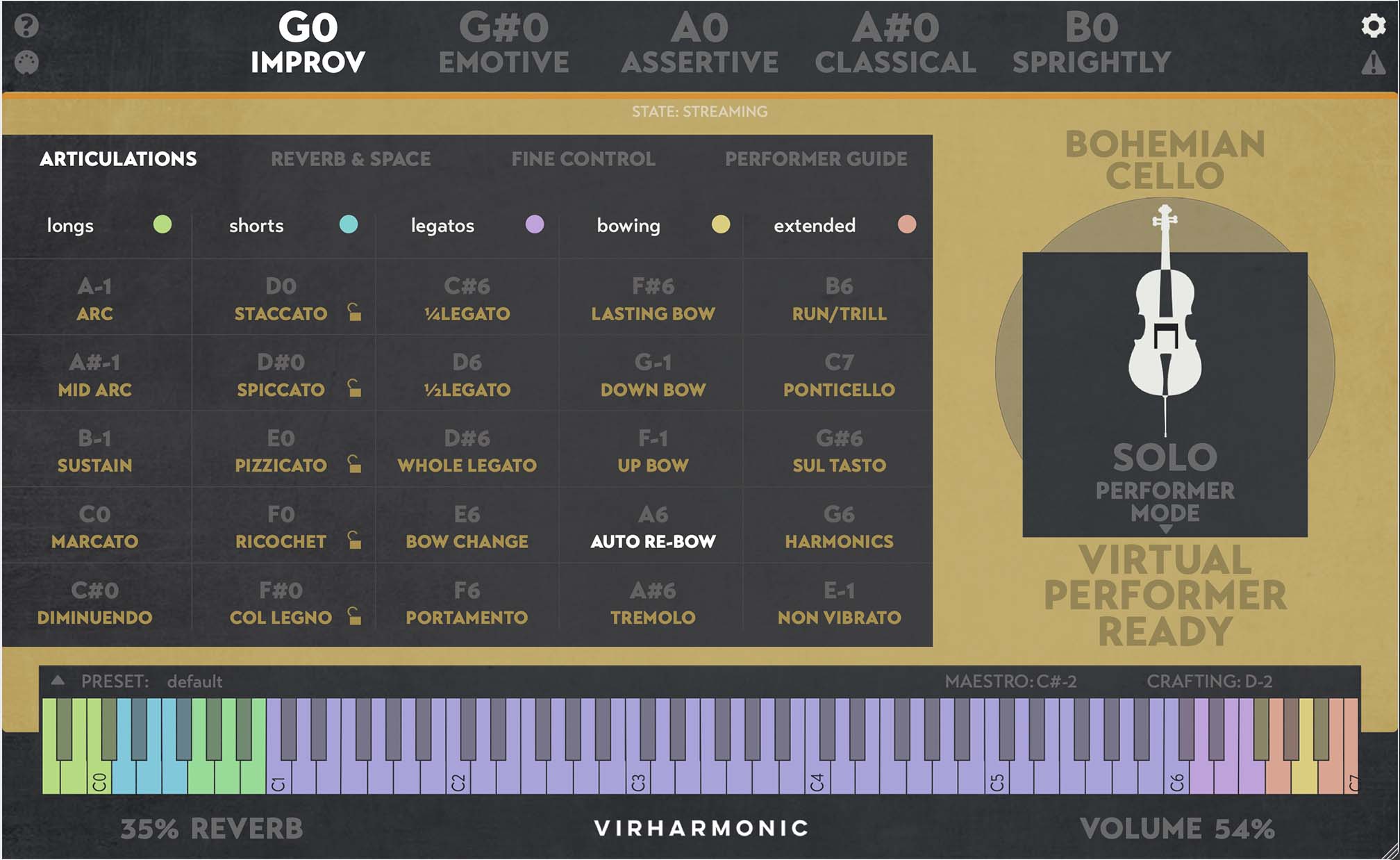 the virtual performer: enables incredibly easy live play, auto selecting the bow types, legatos and bow positions based on your play style.