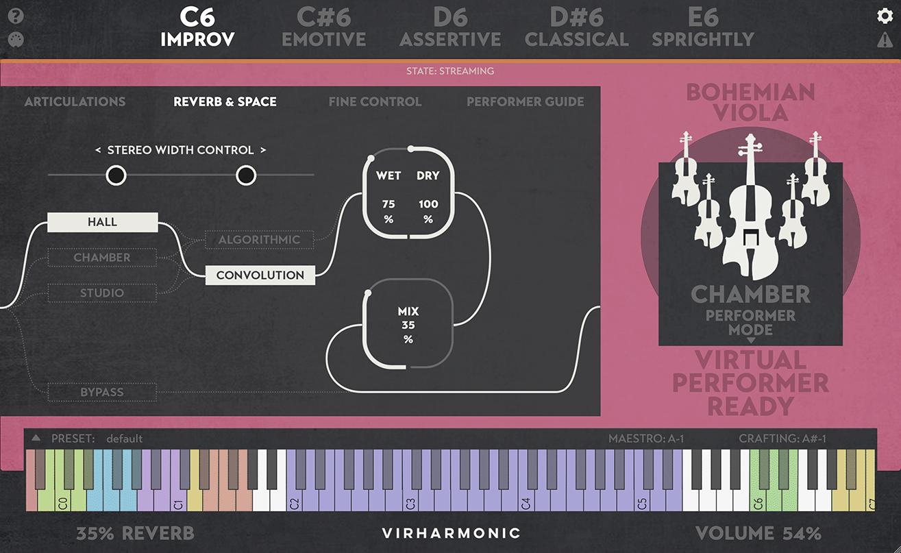This is where the virtual performer comes in, controlling all the varied legatos, bow types and emotive expressions as you play, all from one patch and all in real time.
