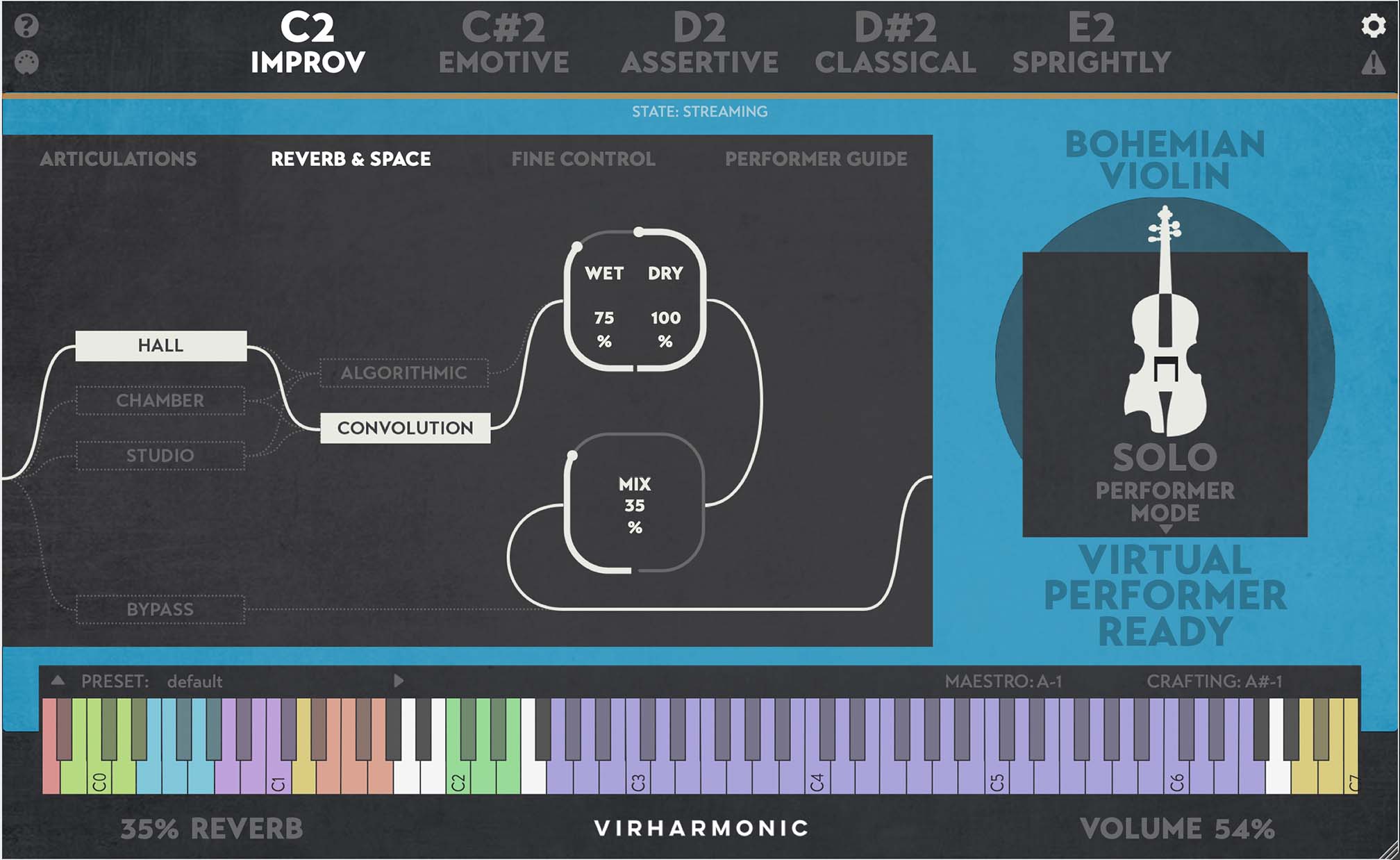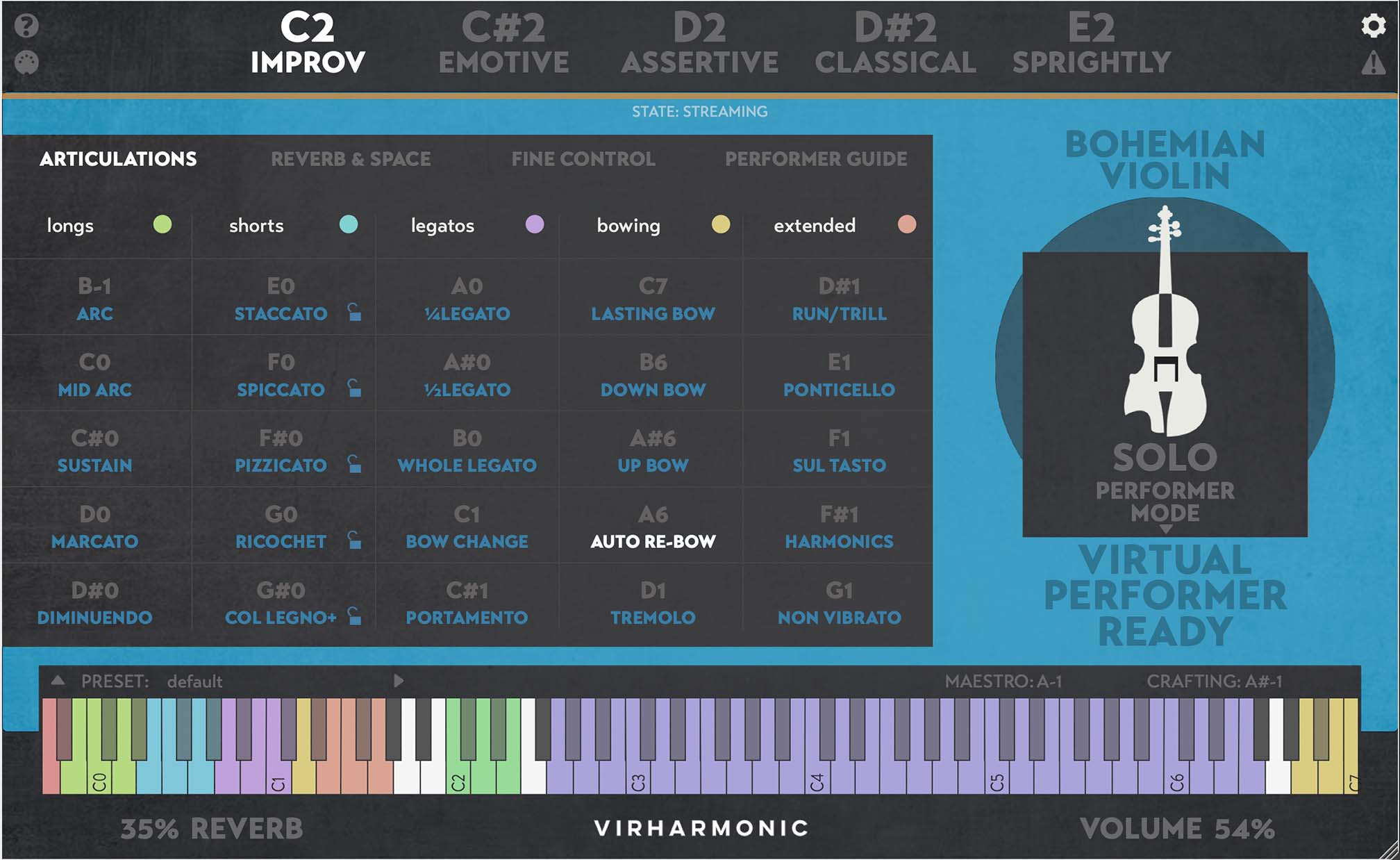 the virtual performer: enables incredibly easy live play, auto selecting the bow types, legatos and bow positions based on your play style.